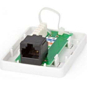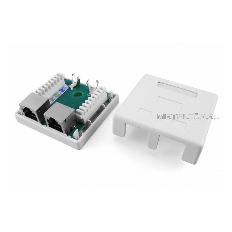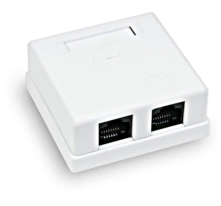 Устройство оснащено двумя гнездами RJ- 45 категории 5е под разъем 8P8C (8 посадочных мест и 8 контактов).